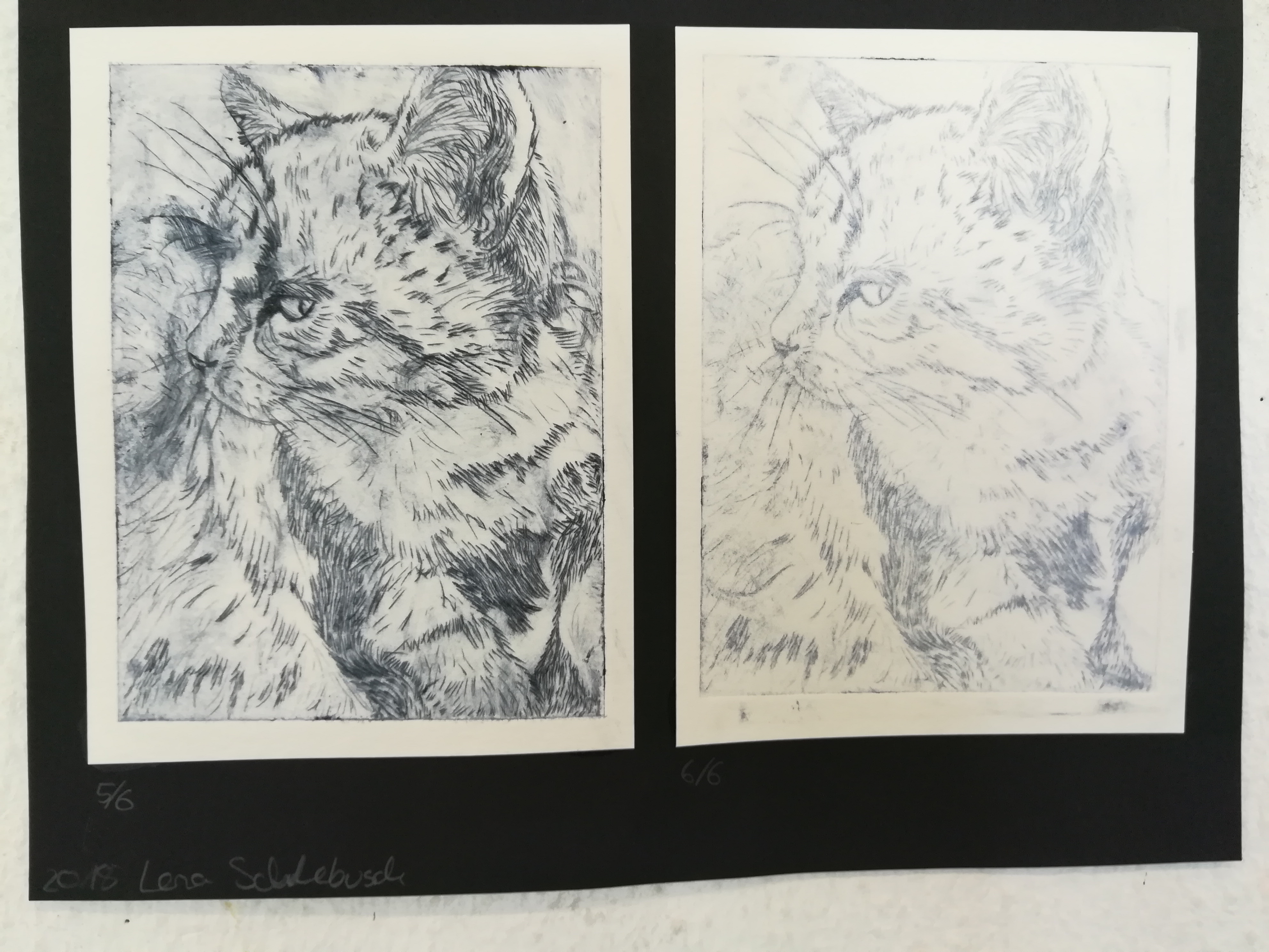 Eine Technik, welche die Teilnehmer häufig verwenden, ist der Linolschnitt, bei dem man zuerst auf den Druckplatten eine Form schnitzt, dann walzt und schlussendlich druckt. Insgesamt werden an den ersten beiden Tagen ca. 30 Bilder gedruckt.